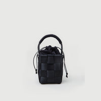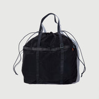 - M110//DRAW.SMALL.POUCH - lead black Materials: Waterproof Italian fabric, reinforced with military-grade webbing made in the UK. Elastic drawstring closure. Detailed with 'PACK' and 'Made in Europe' woven label. Measurements, folded: 20cm x 18cm x 2cm. Made in: Amsterdam, The Netherlands