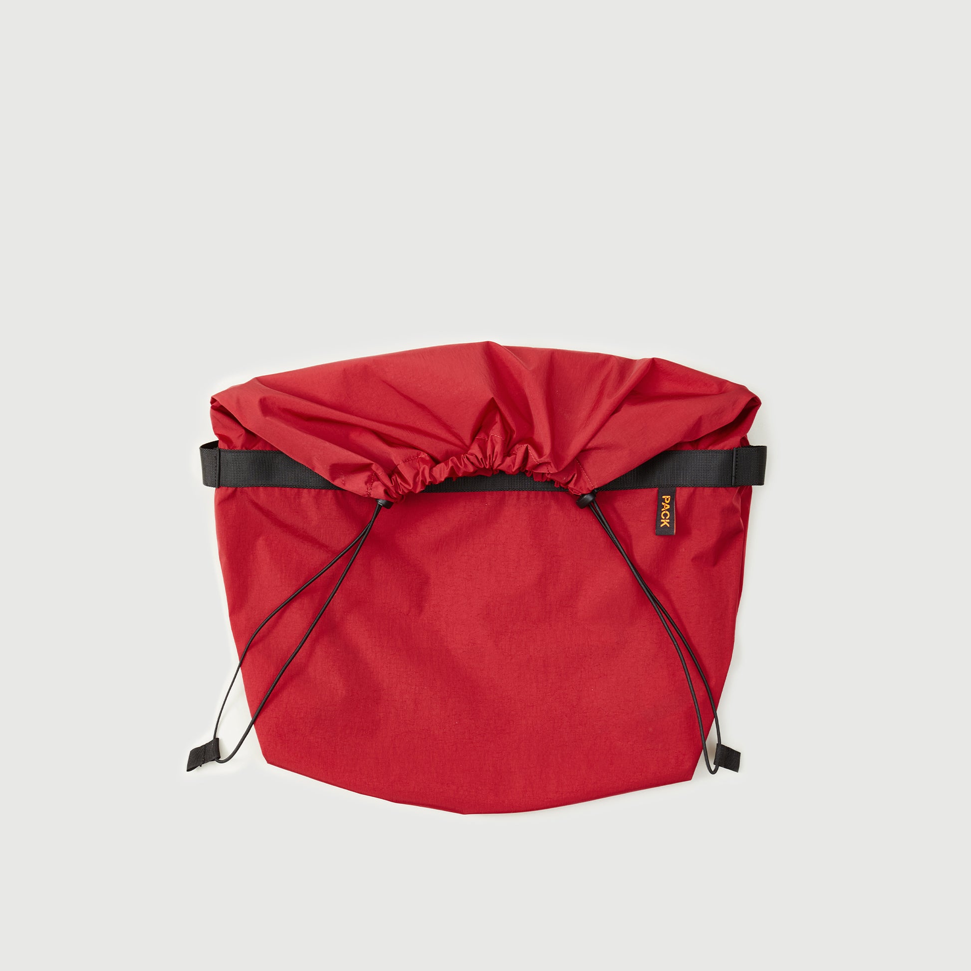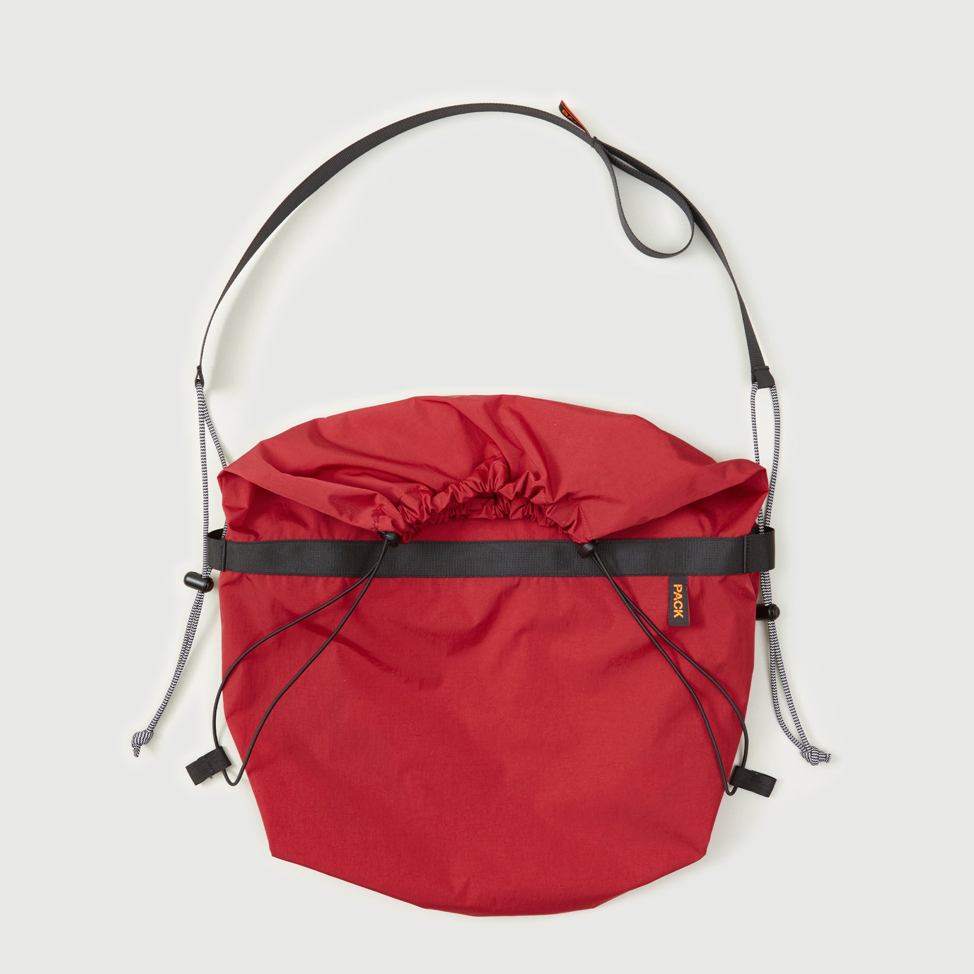 - M112//DRAW.MESSENGER.POUCH - iron red Materials: Waterproof Italian fabric, reinforced with military-grade webbing made in the UK. Elastic drawstring closure. Detailed with 'PACK' and 'Made in Europe' woven label. Measurements, folded: 37cm x 27cm x 7cm. Made in: Amsterdam, The Netherlands