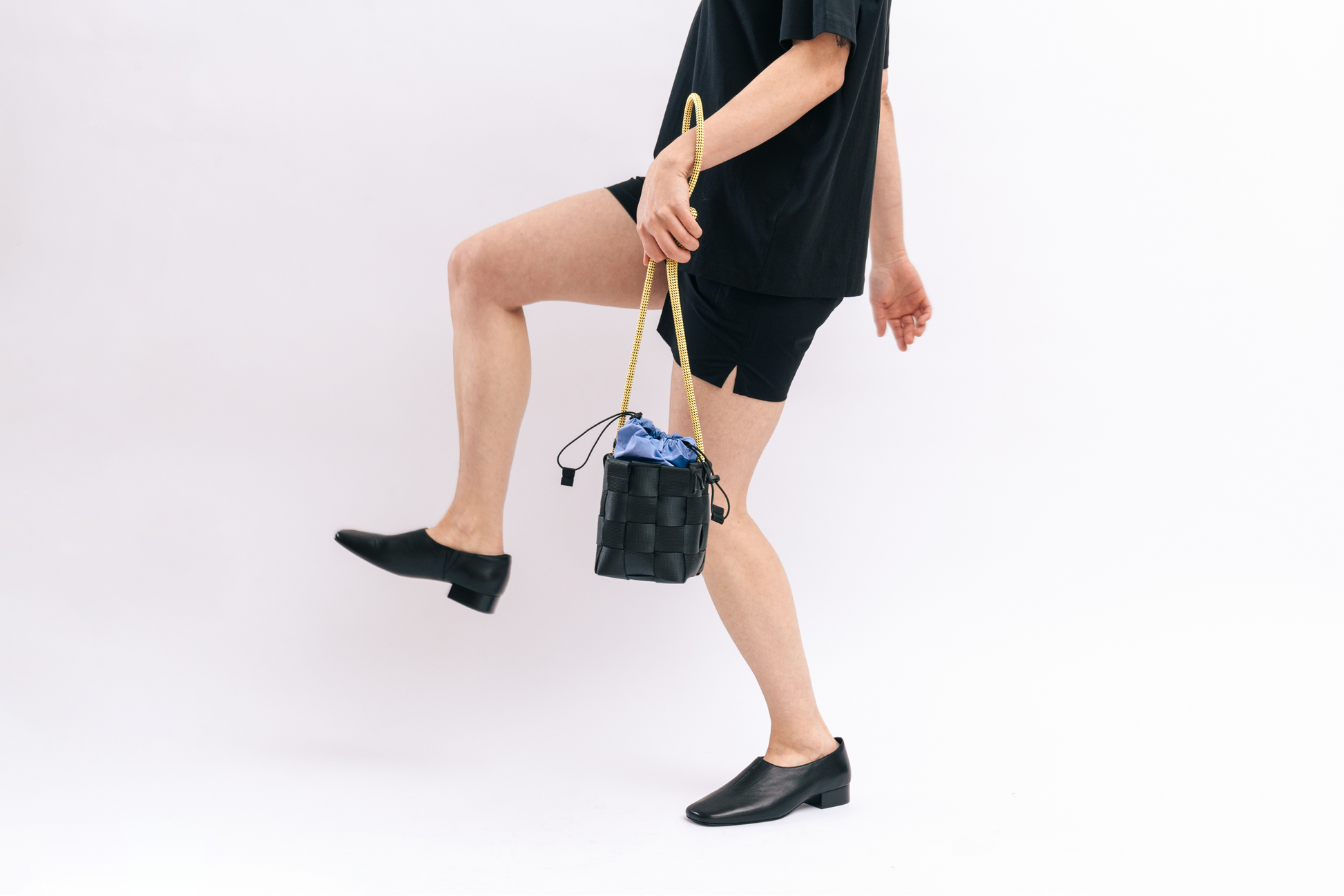 - M702//WIDE WEB.SMALL.SQUARE BASKET - lead black Materials: recycled polyester webbing, made in UK. Measurements: 12 x 16 x 12 cm Made in: Amsterdam, The Netherlands
