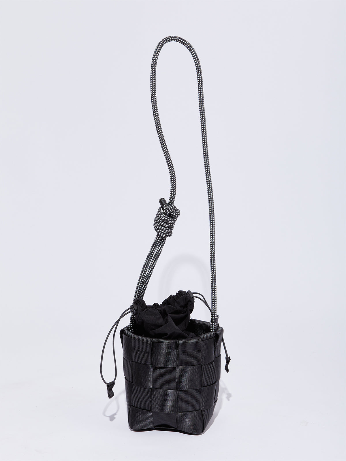 - M702//WIDE WEB.SMALL.SQUARE BASKET - lead black Materials: recycled polyester webbing, made in UK. Measurements: 12 x 16 x 12 cm Made in: Amsterdam, The Netherlands