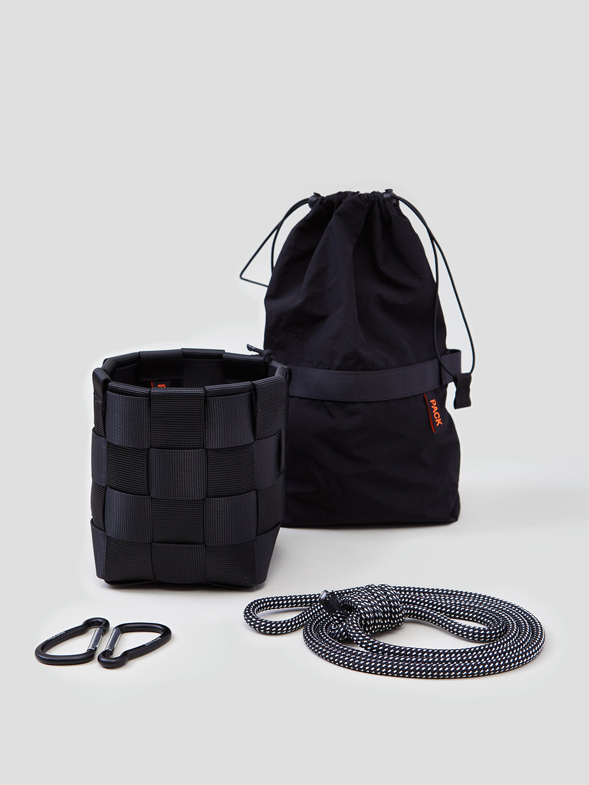 A220//WIDE.WEB.SMALL.SQUARE BASKET SLING - lead black / rope strap