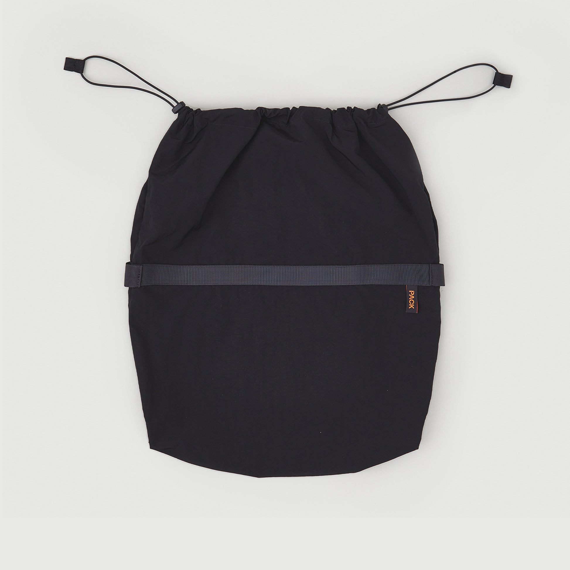 Materials: Waterproof Italian fabric, reinforced with military-grade webbing made in the UK. Elastic drawstring closure. Detailed with 'PACK' and 'Made in Europe' woven label.