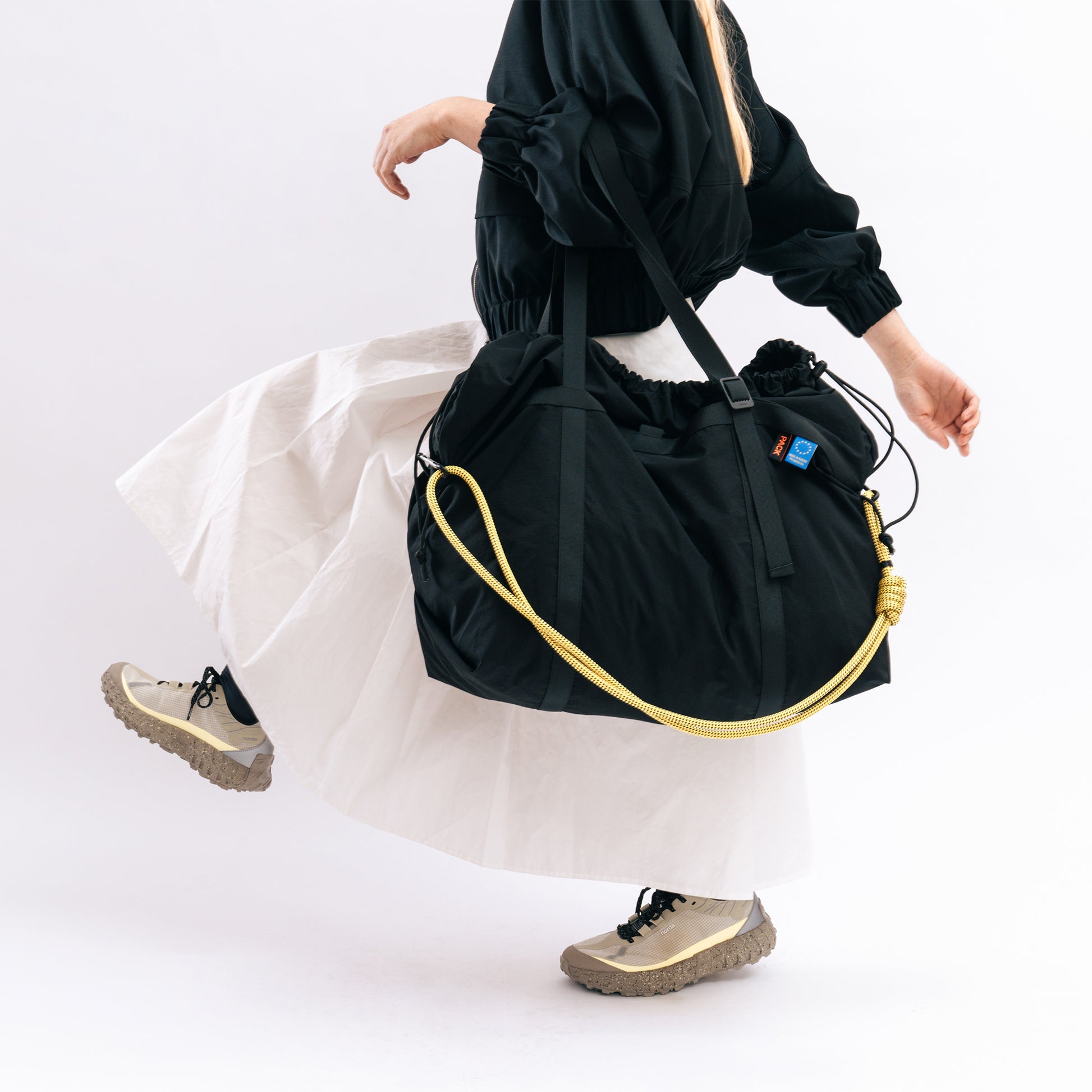 A lightweight, packable drawstring holdall for trips, the gym, or days on the move. Weatherproof and flexible, designed to carry a full load comfortably while keeping its shape when lightly packed. A simple closure and a spacious interior make it easy to adapt to the day.