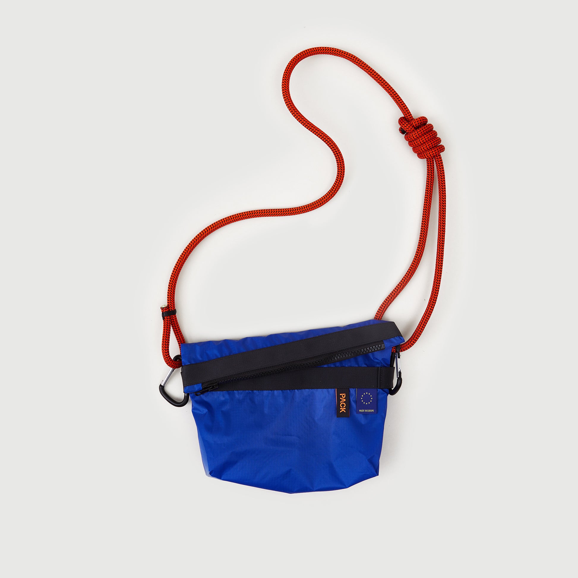 Easily exchangeable shoulder strap module made from 8mm diameter climbing rope. Length adjustable with a slider knot.